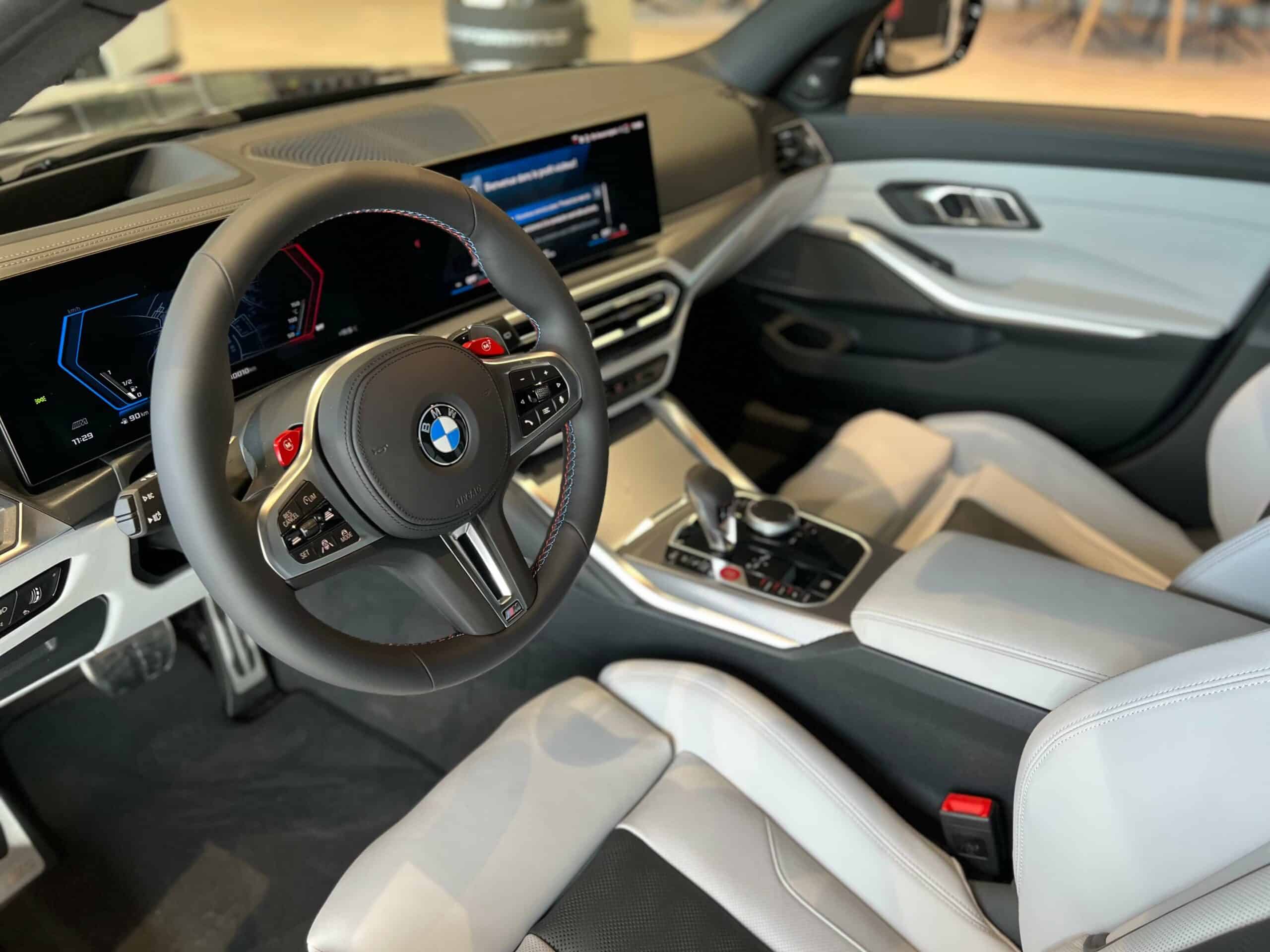 The photos taken at the BMW Bilia-Emond Luxembourg dealership remind us that the M3 – be it the sedan or the wagon – uses the bulky gear lever for the automatic transmission whereas the 3 Series LCI (including the M340i) has switched to a small selector. Similarly, the 2023 M3 hasn’t received the sharper-looking headlights of the lesser 3er introduced with last year’s facelift.