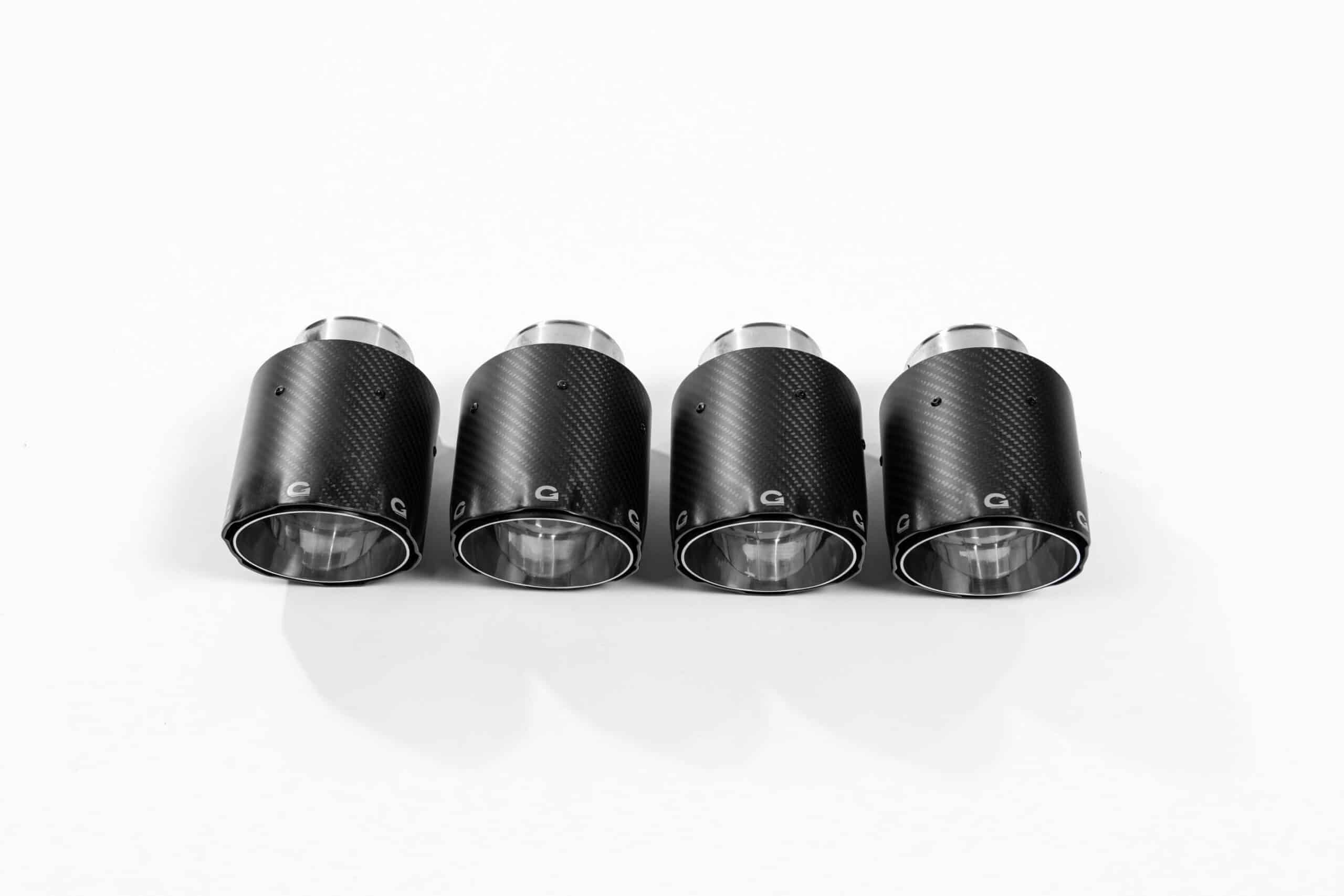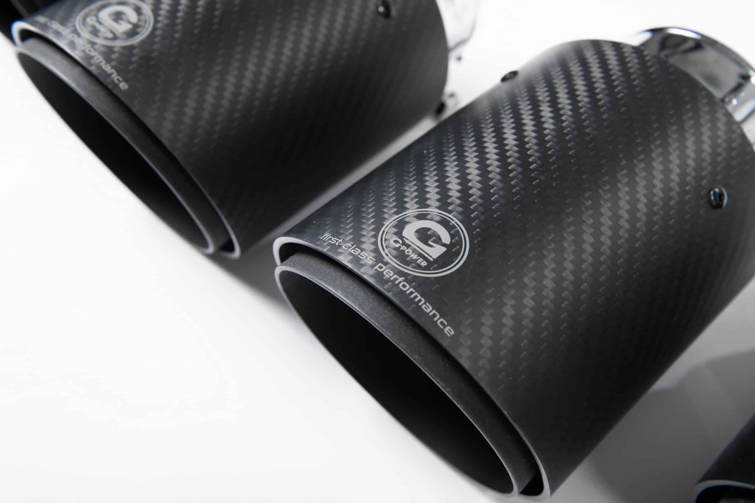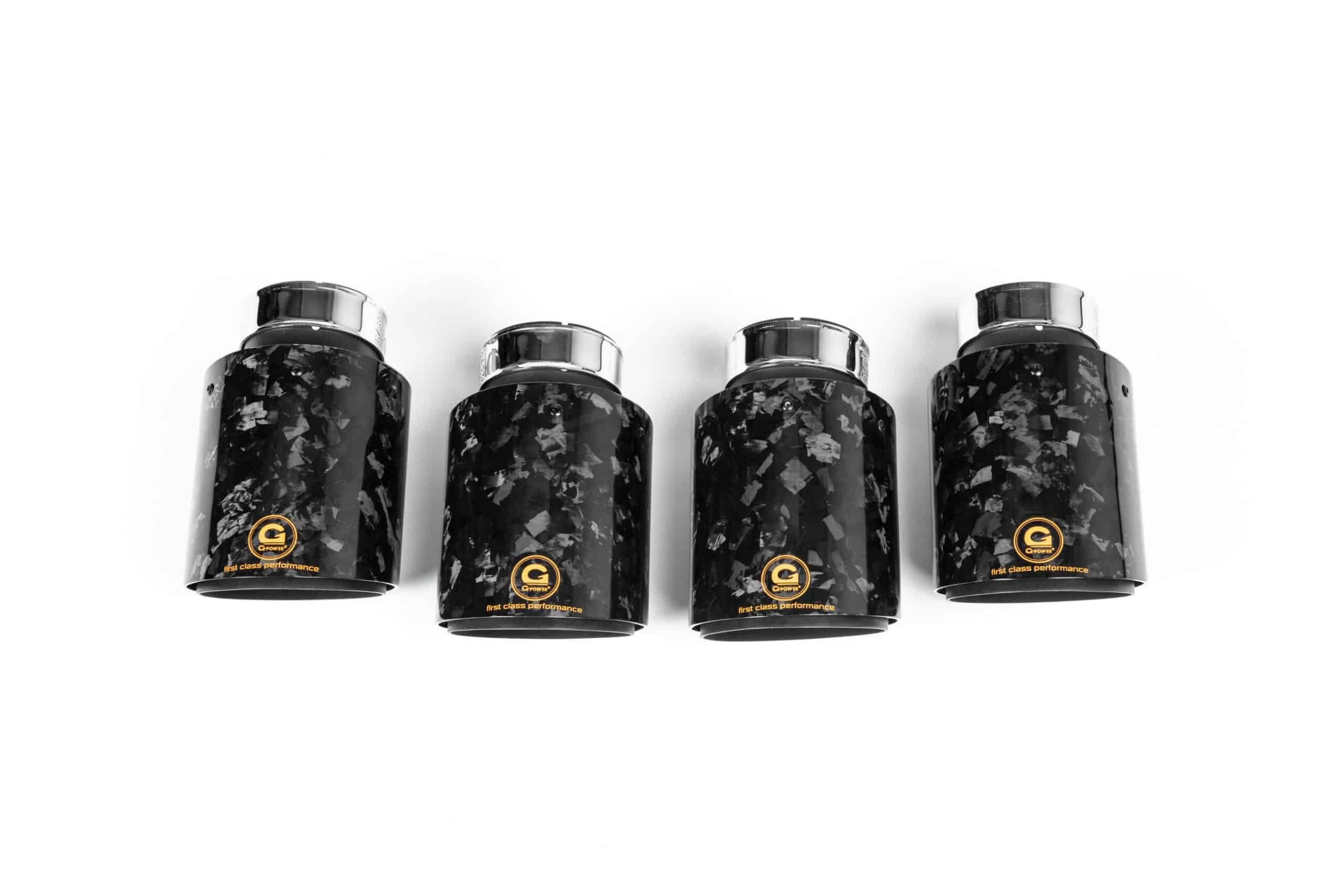 To extract roughly 280 hp from the eight-cylinder engine, G-Power installed forged pistons and connecting rods along with two charge air coolers. The original turbochargers now have bigger housings and CNC-milled compressors and turbine wheels. In addition, an aftermarket exhaust with large quad carbon tips has been fitted to the tuner’s ultimate four-door M8.