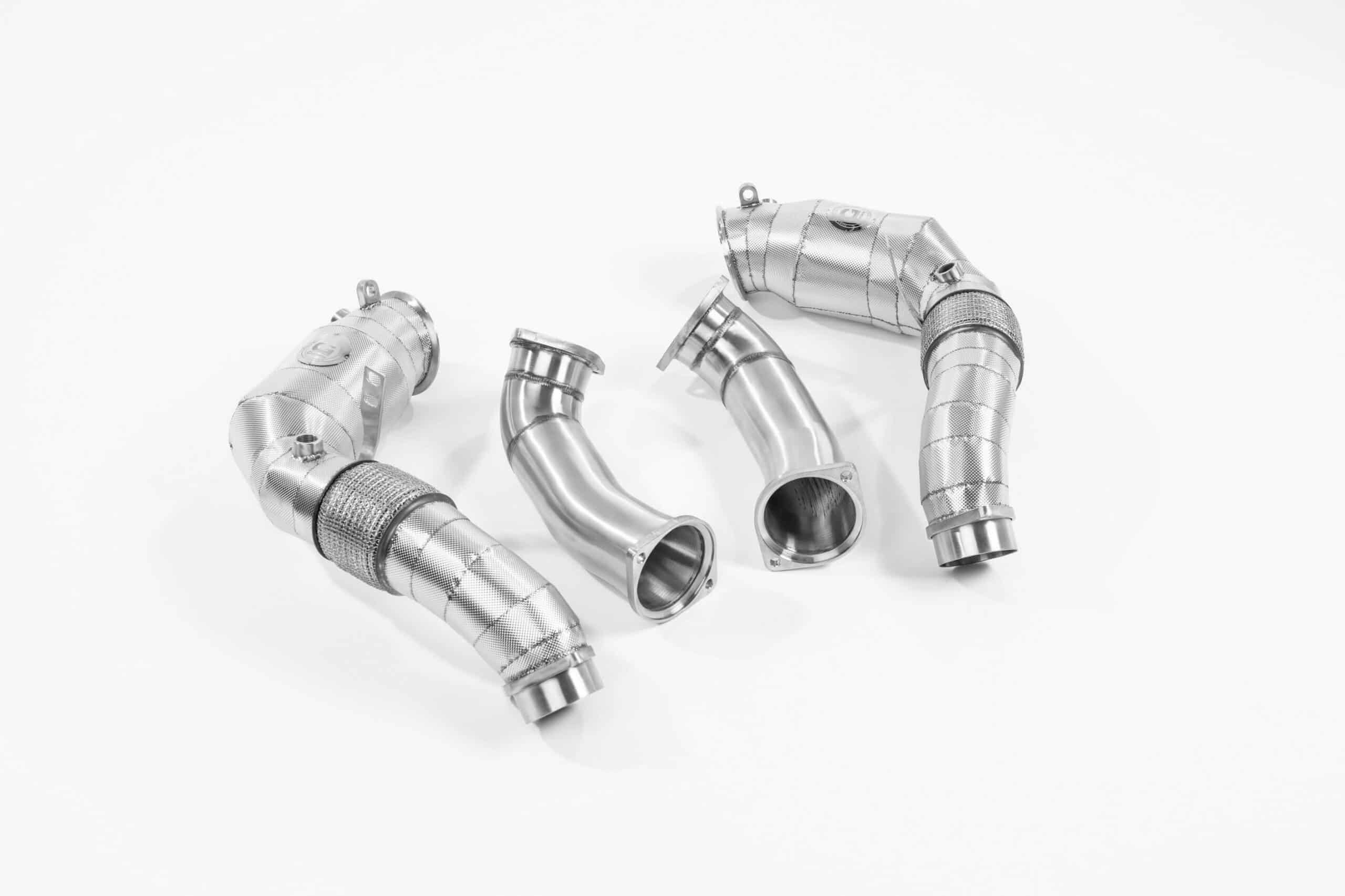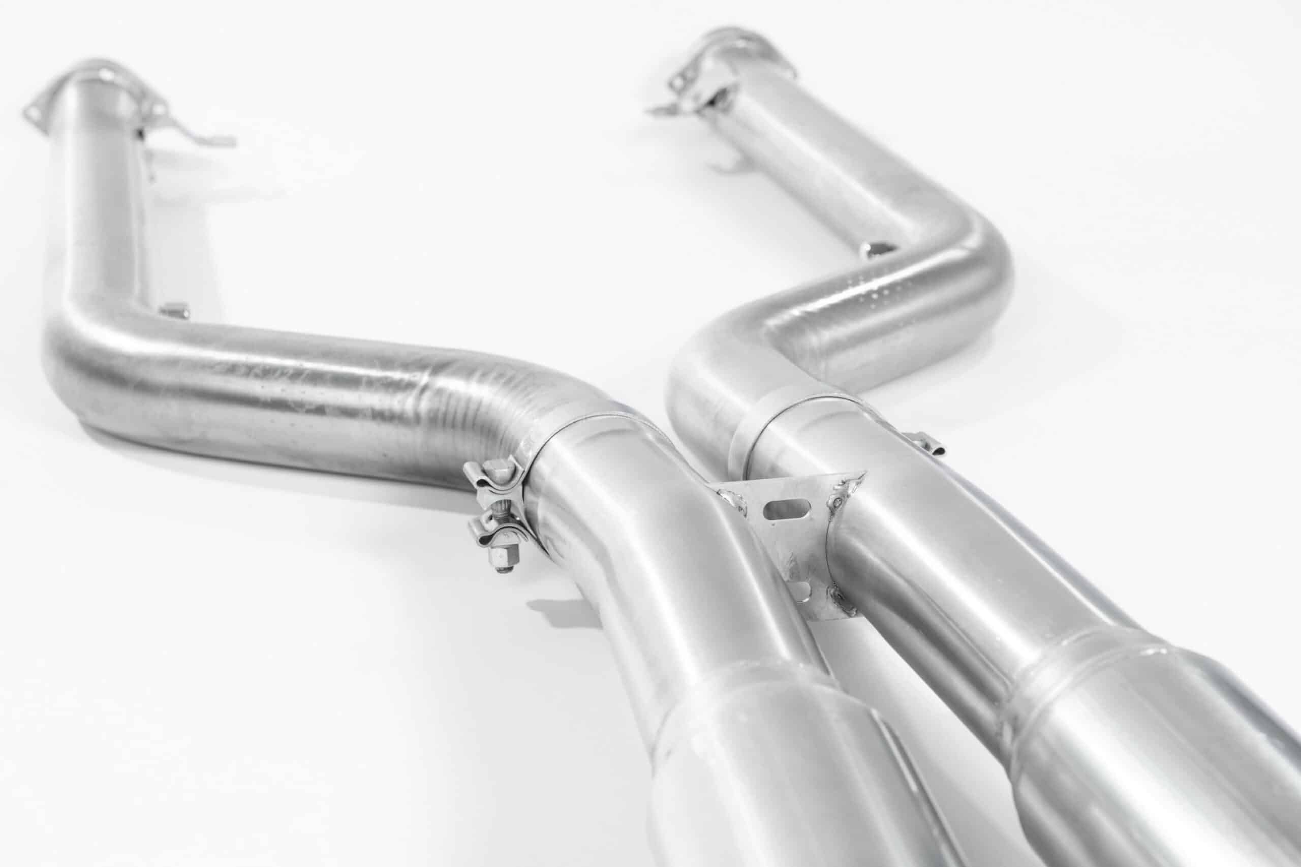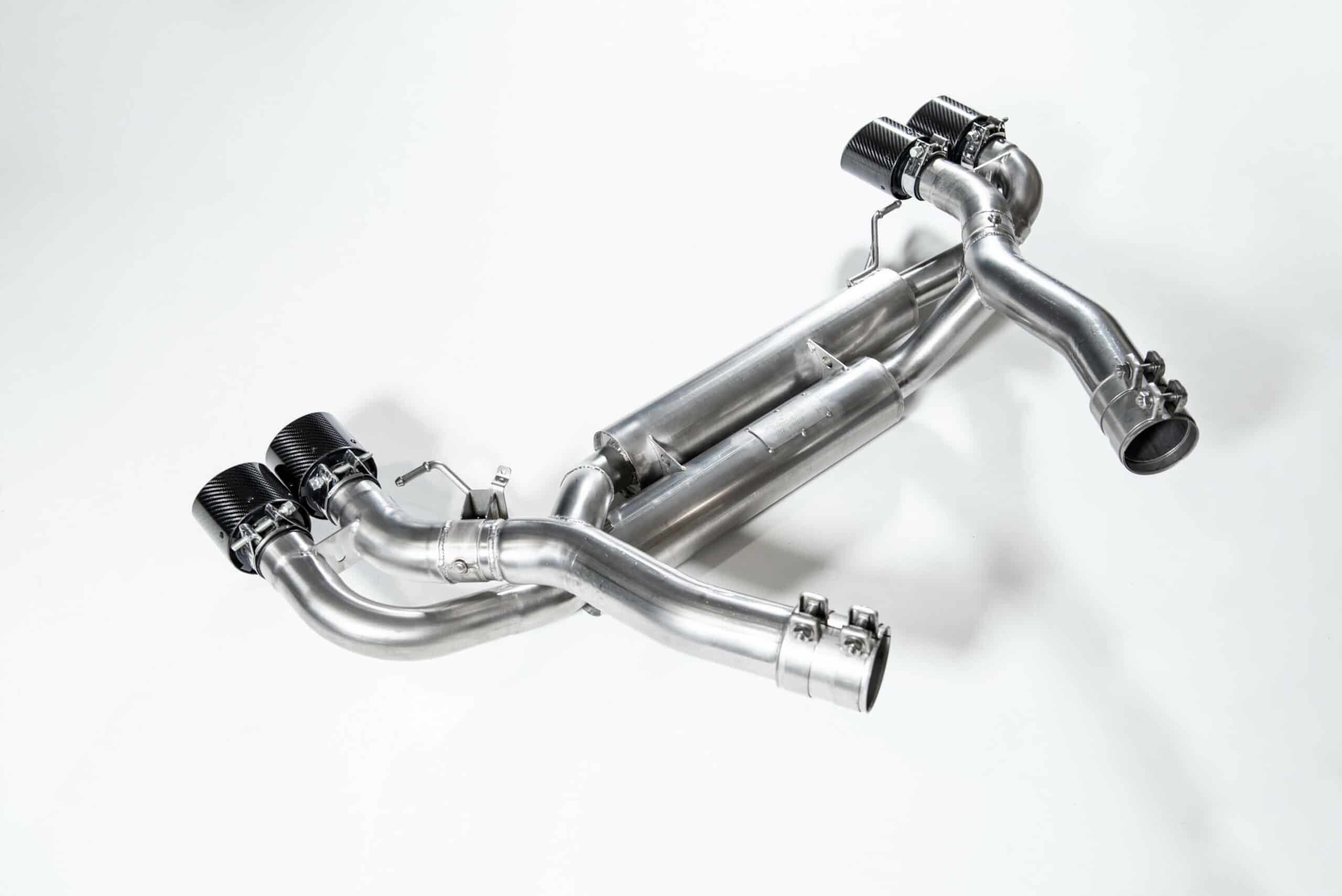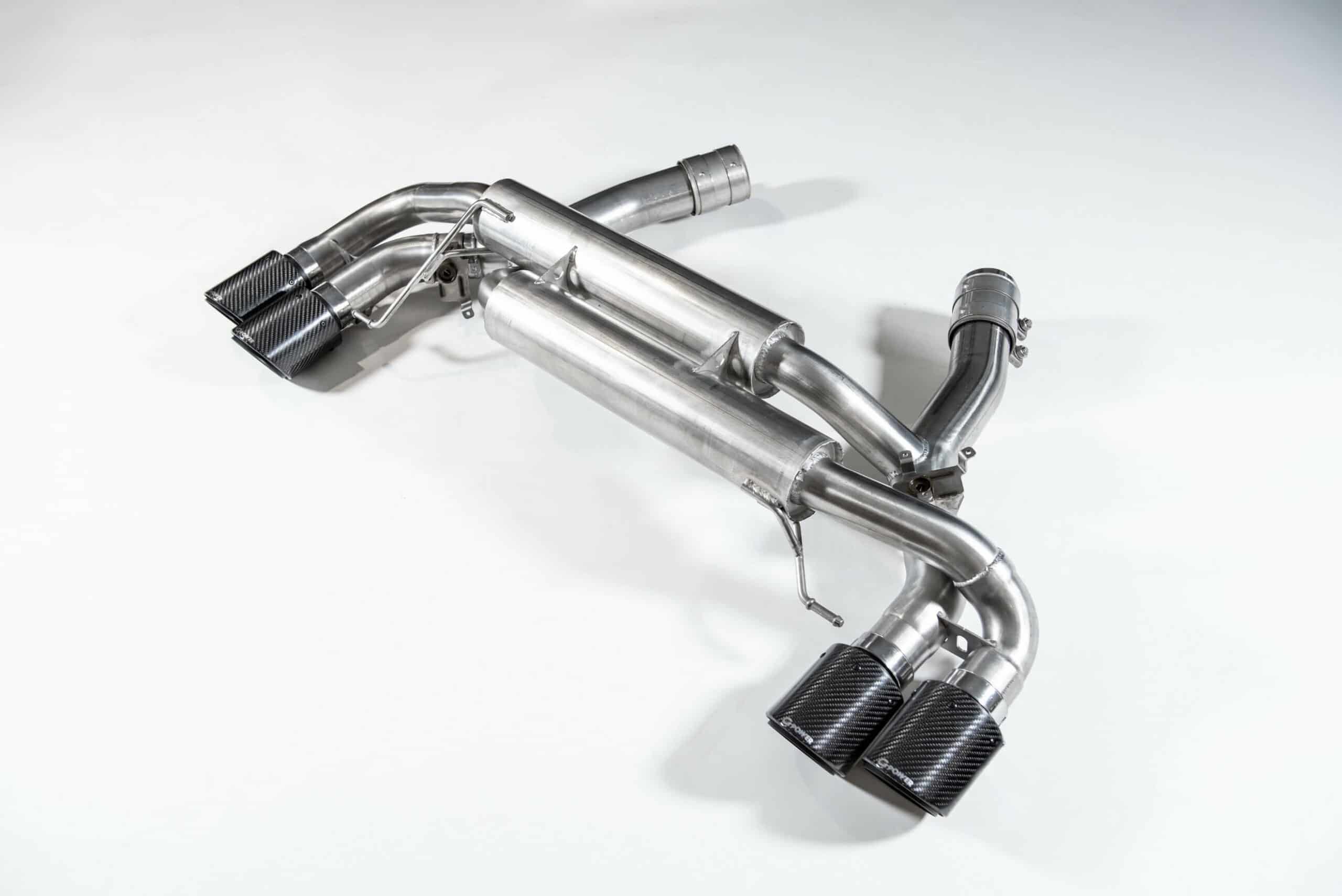 To extract roughly 280 hp from the eight-cylinder engine, G-Power installed forged pistons and connecting rods along with two charge air coolers. The original turbochargers now have bigger housings and CNC-milled compressors and turbine wheels. In addition, an aftermarket exhaust with large quad carbon tips has been fitted to the tuner’s ultimate four-door M8.