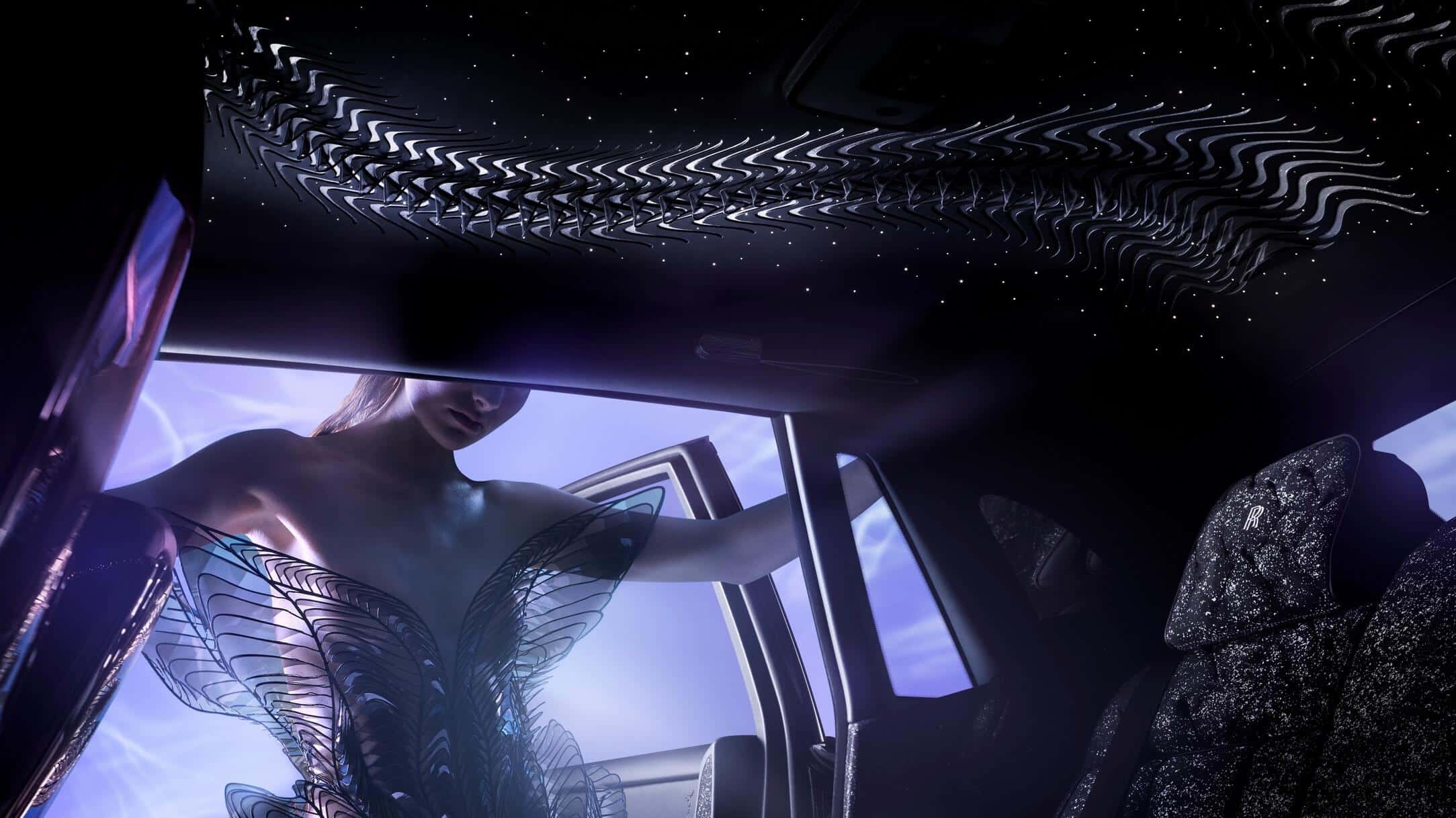 Based on the Phantom Extended, the one-of-a-kind creation was conceived in collaboration with Dutch fashion designer Iris van Herpen. It’s been in development for no fewer than four years, meaning the project was green-lighted shortly after the Phantom VIII made its official debut. The opulent saloon has gone through a discreet facelift since then, and this unique build gets the updates introduced in 2022 with the Series II. These include the illuminated Pantheon Grille flanked by revised headlights with laser-cut bezel starlights.