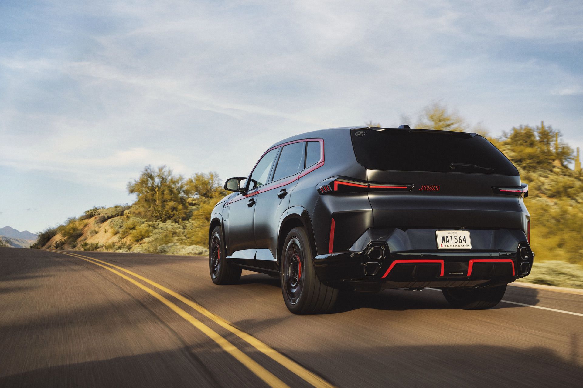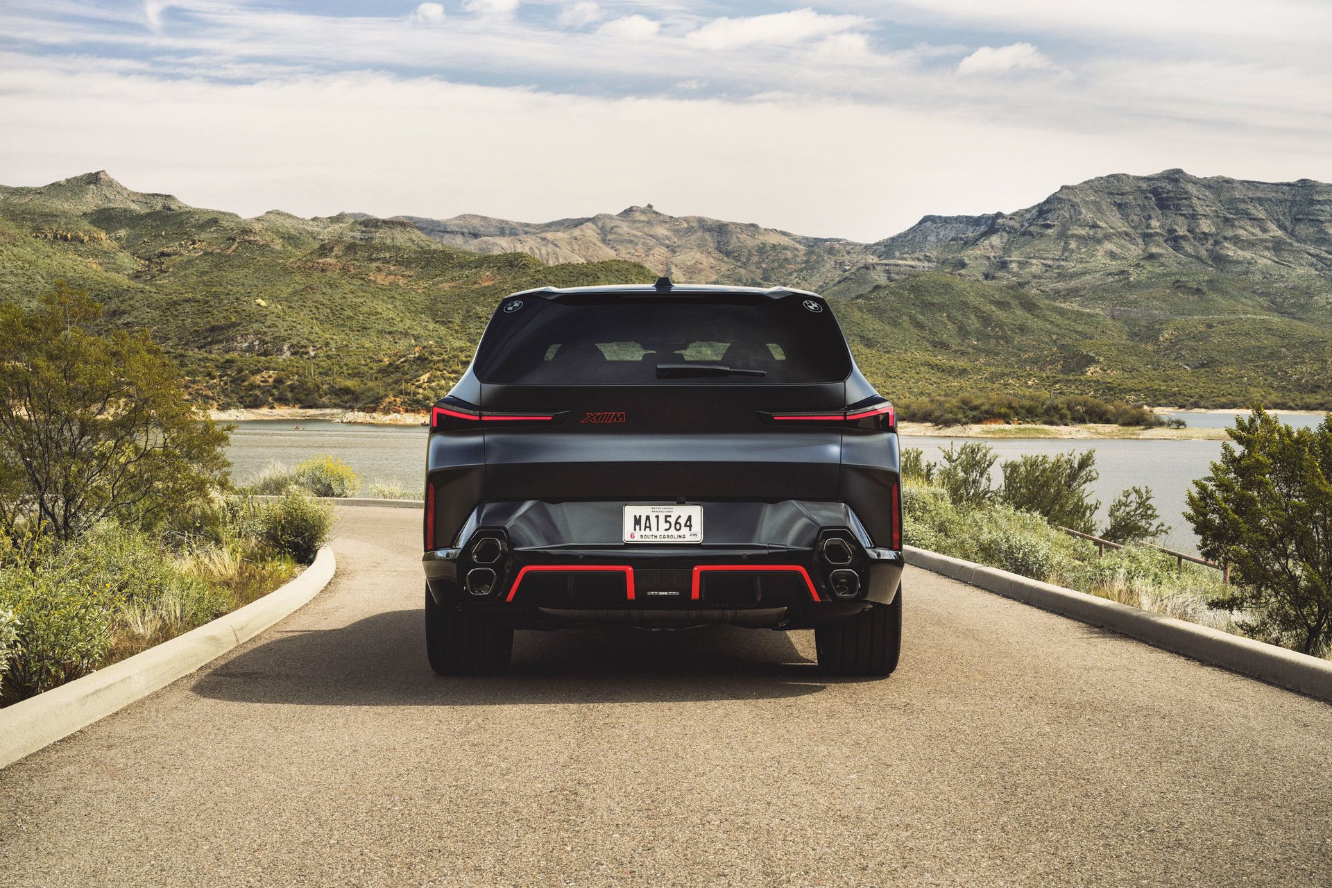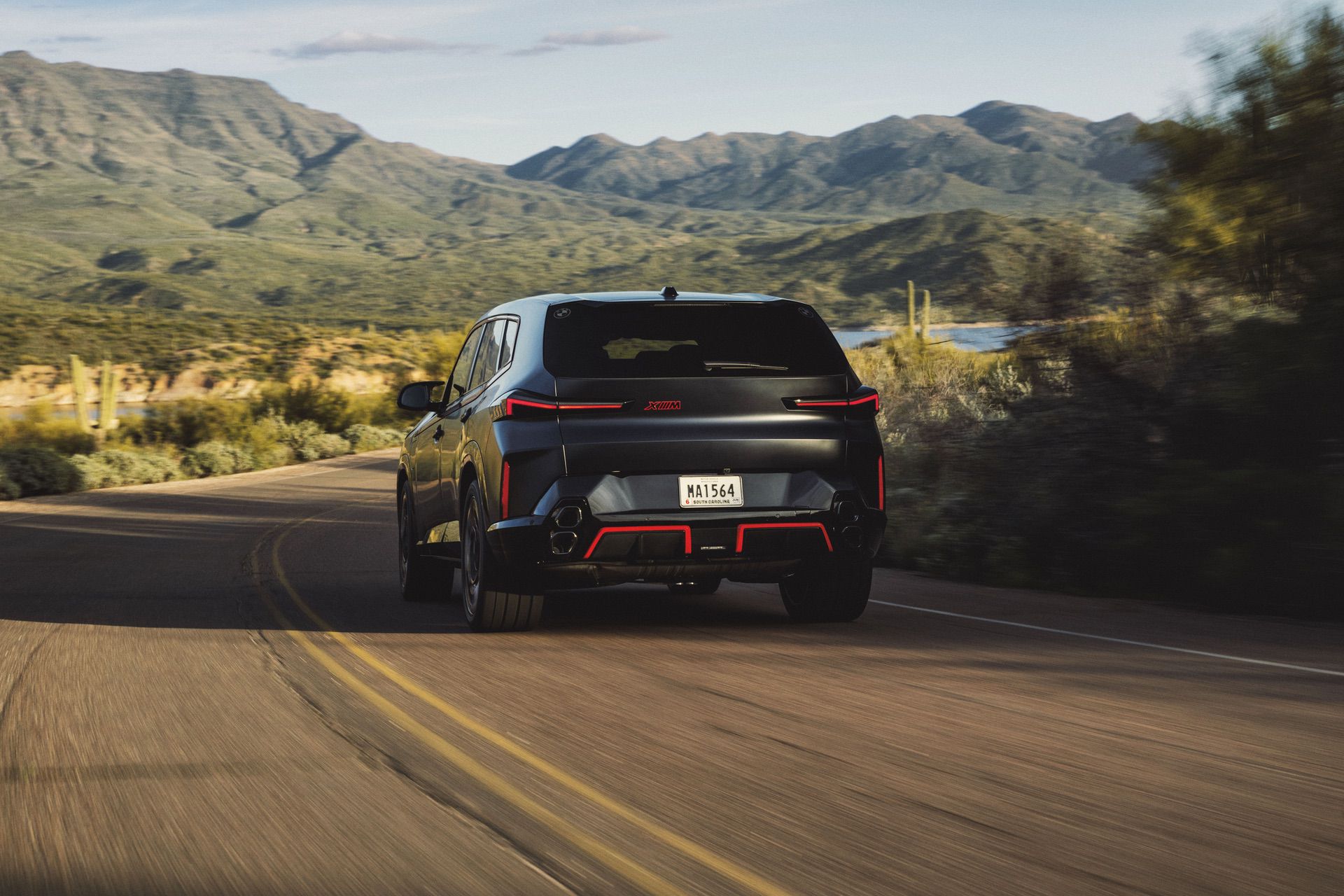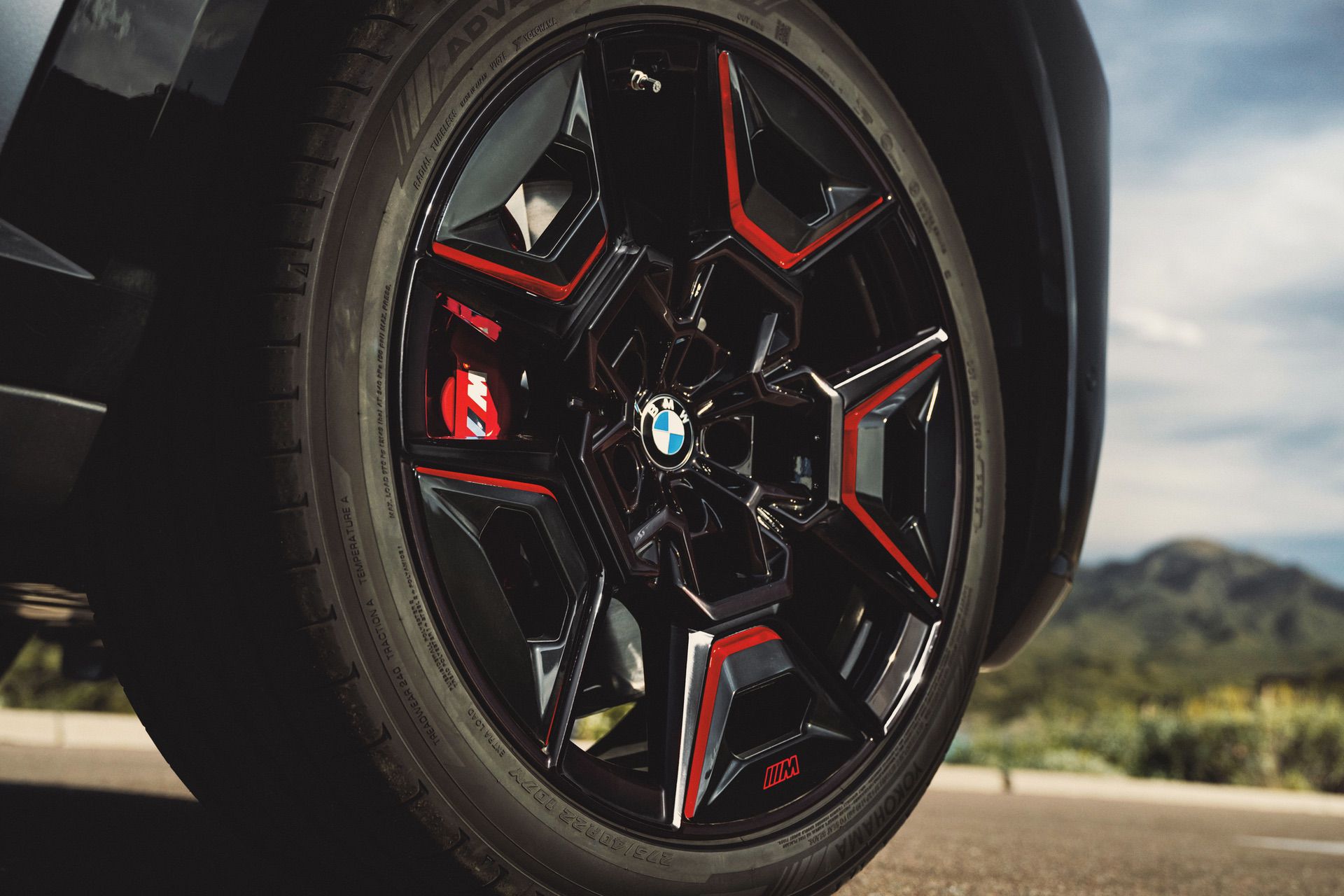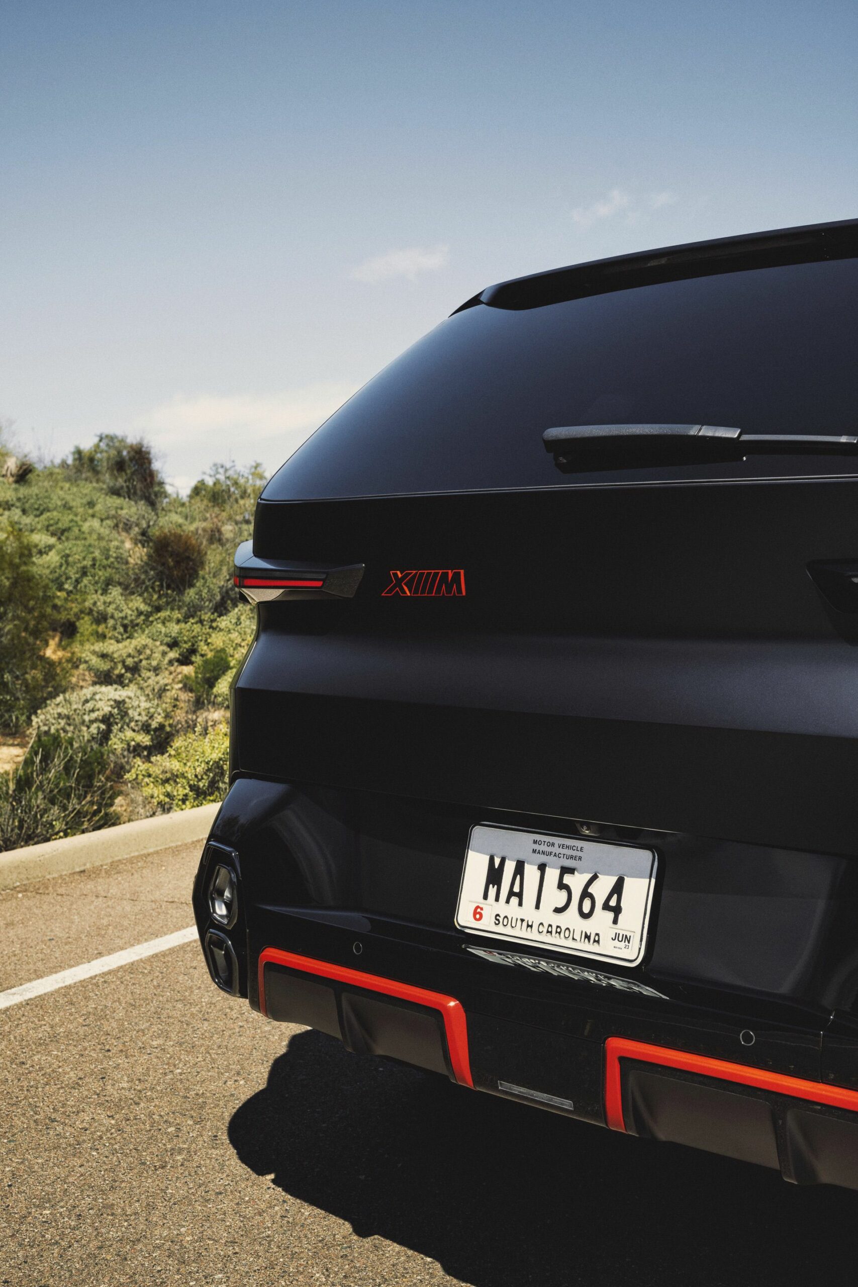 One of the available red options is the red piece of “accent band” trim on the outside the car, rather than the usual black or bronze. There are also red accents in the standard 23-inch wheels (22s are optional), and a black and red two-tone motif for the XM’s signature 3D geometric interior headliner. Red contrast stitching and touches are also scattered throughout the cabin, never letting you forget the color of your label. And in case you forget which car you’re driving, a new “XM” badge underneath the control display and carbon fiber trim with blue and red accents will remind you.