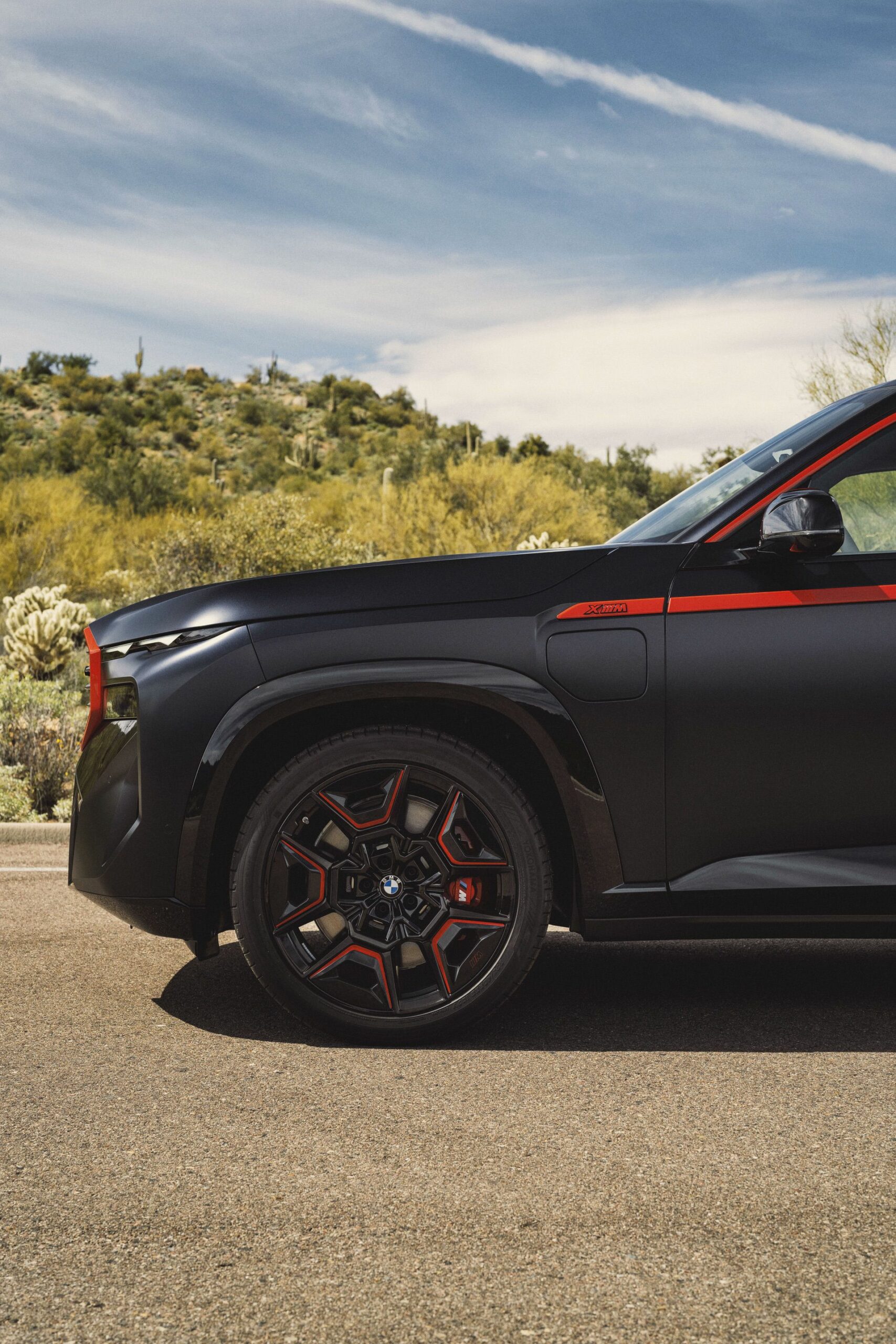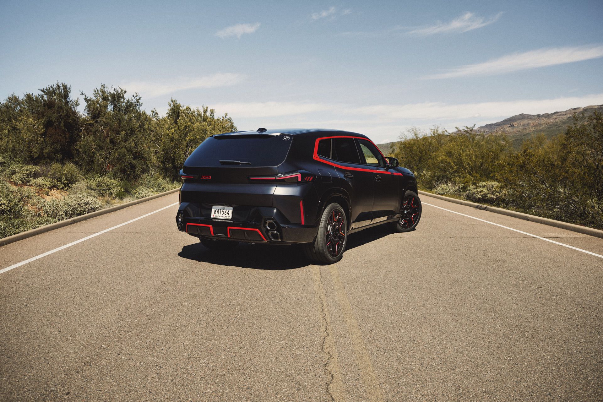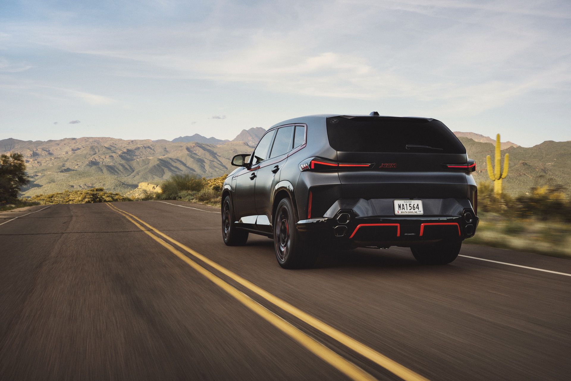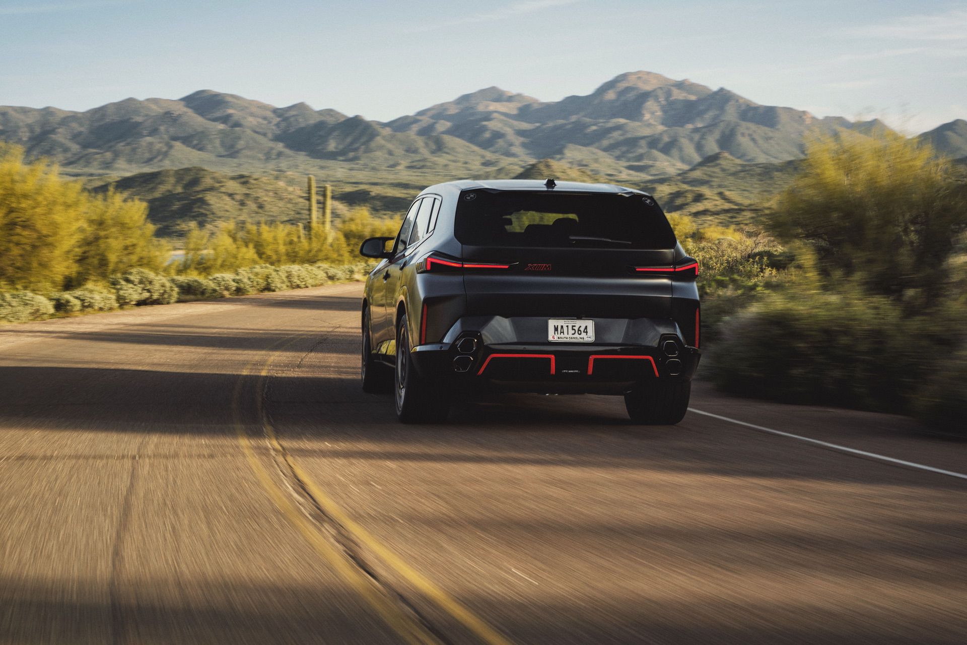 One of the available red options is the red piece of “accent band” trim on the outside the car, rather than the usual black or bronze. There are also red accents in the standard 23-inch wheels (22s are optional), and a black and red two-tone motif for the XM’s signature 3D geometric interior headliner. Red contrast stitching and touches are also scattered throughout the cabin, never letting you forget the color of your label. And in case you forget which car you’re driving, a new “XM” badge underneath the control display and carbon fiber trim with blue and red accents will remind you.