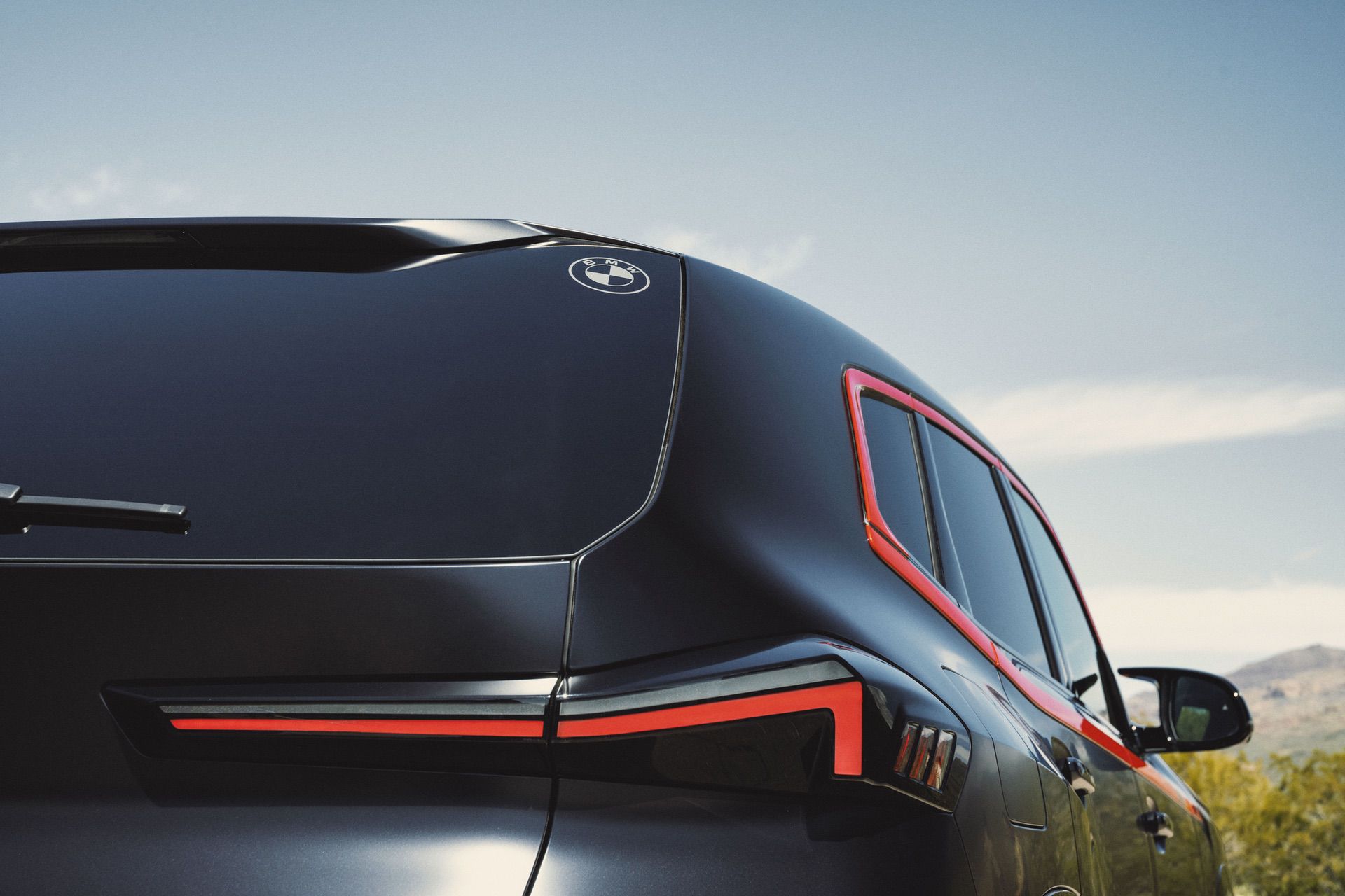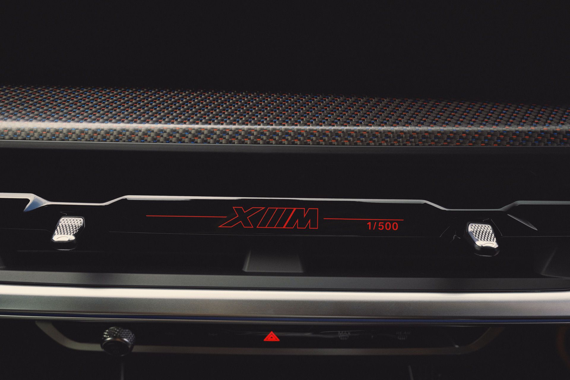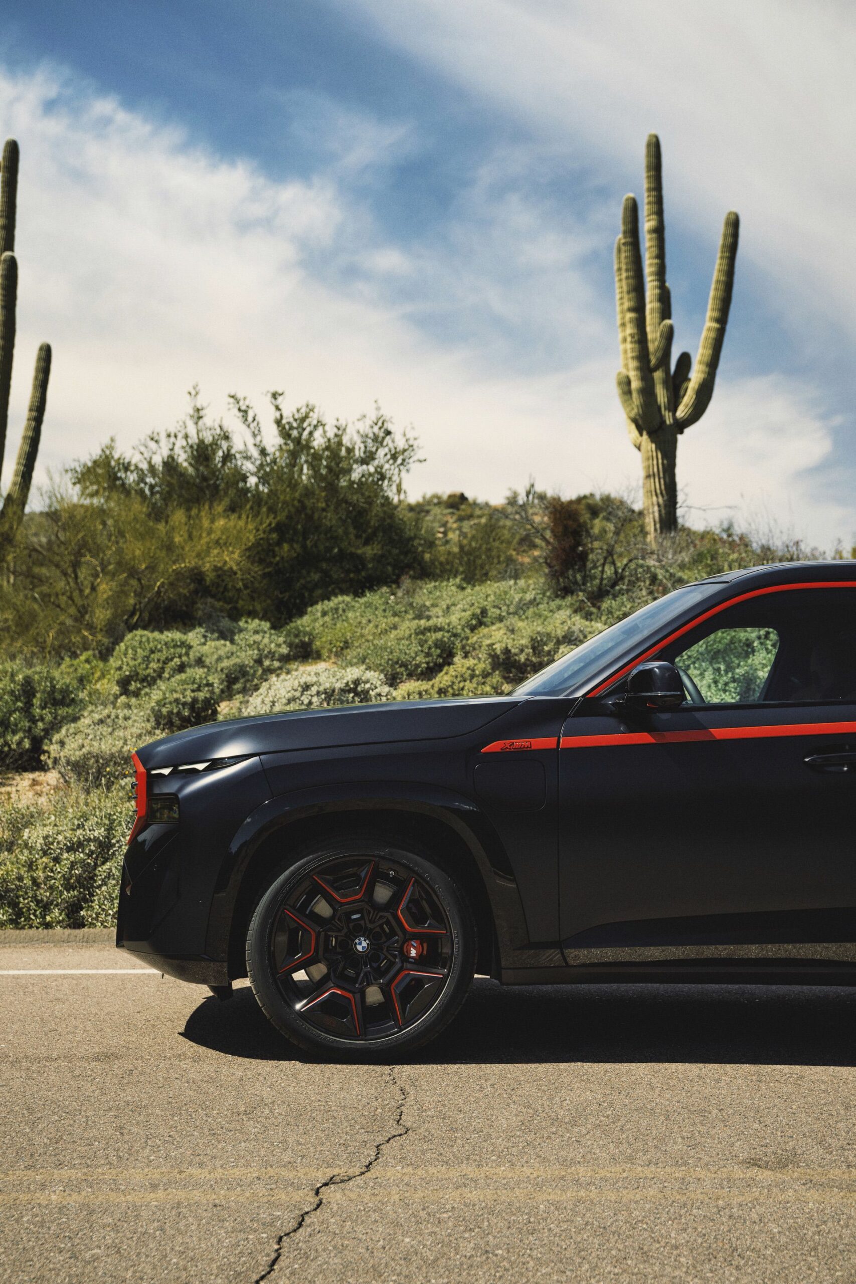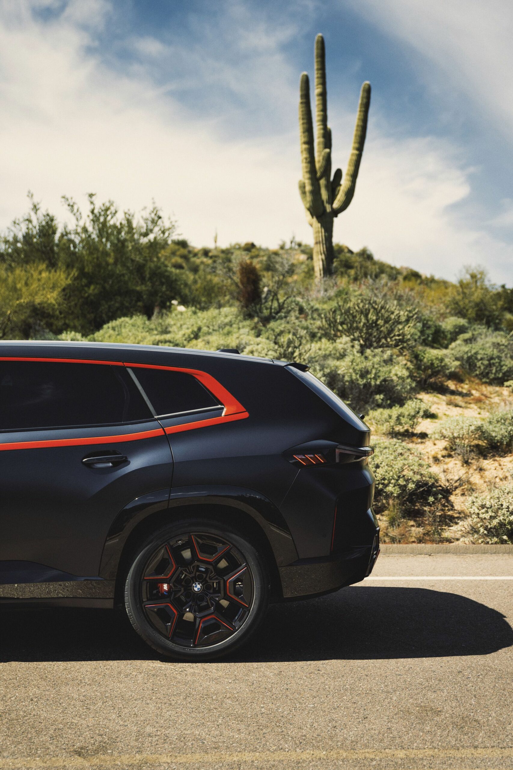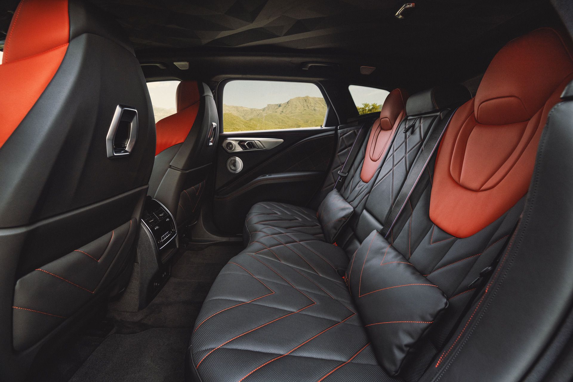 One of the available red options is the red piece of “accent band” trim on the outside the car, rather than the usual black or bronze. There are also red accents in the standard 23-inch wheels (22s are optional), and a black and red two-tone motif for the XM’s signature 3D geometric interior headliner. Red contrast stitching and touches are also scattered throughout the cabin, never letting you forget the color of your label. And in case you forget which car you’re driving, a new “XM” badge underneath the control display and carbon fiber trim with blue and red accents will remind you.