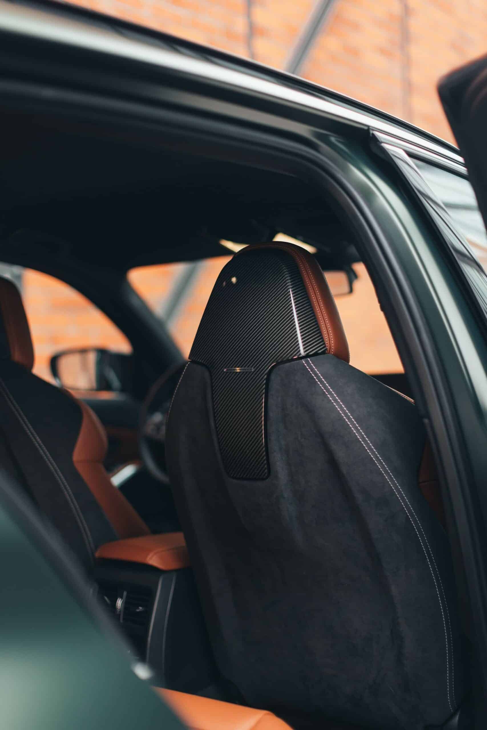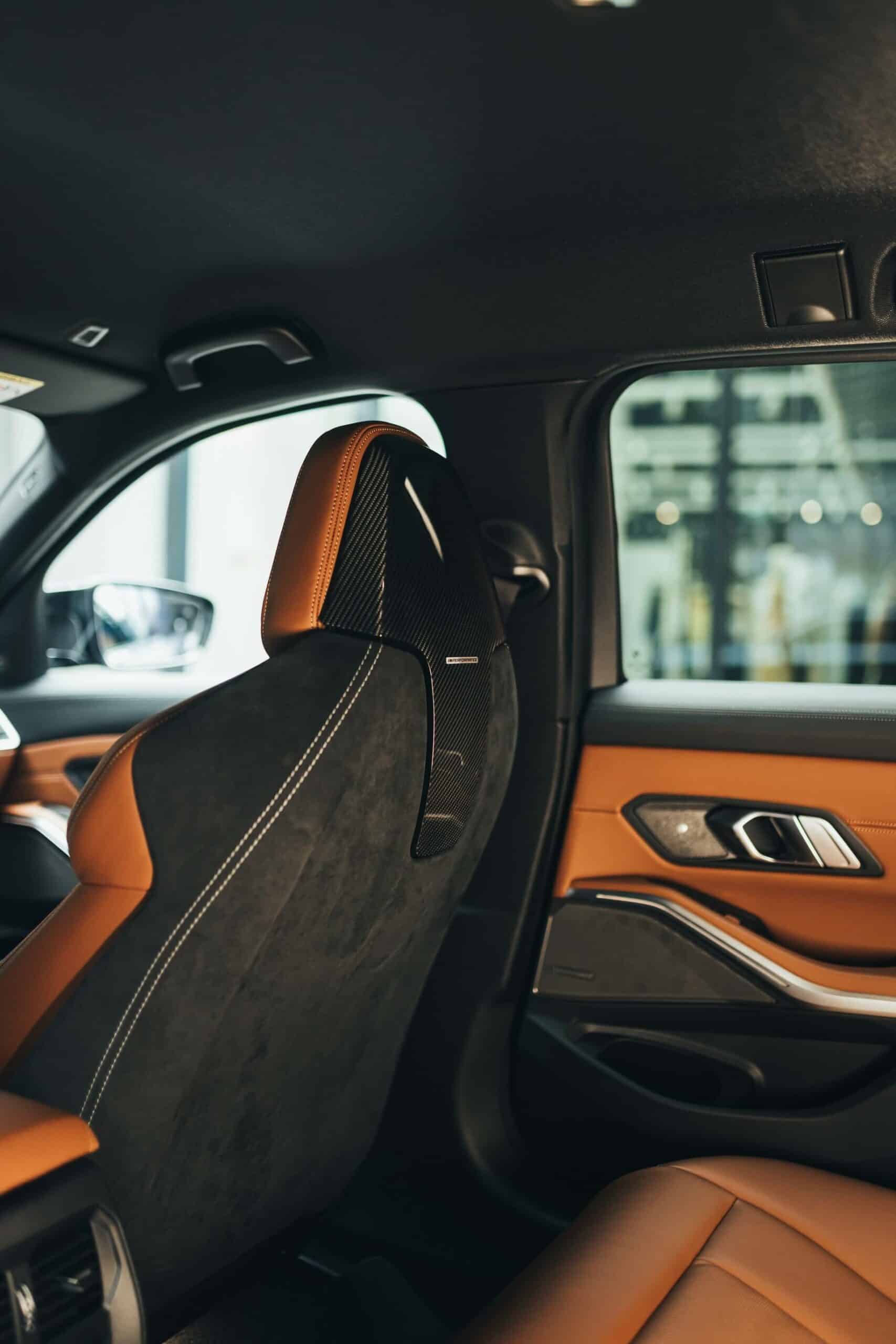 This must be one of the most expensive M3 G81 builds out there since it has miscellaneous upgrades such as a carbon fiber fuel filler cap, M-branded door pins, and M Performance side sills. The Tartufo interior has its fair share of carbon fiber, including for the normal seats as this wagon doesn’t have the optional body-hugging bucket seats.