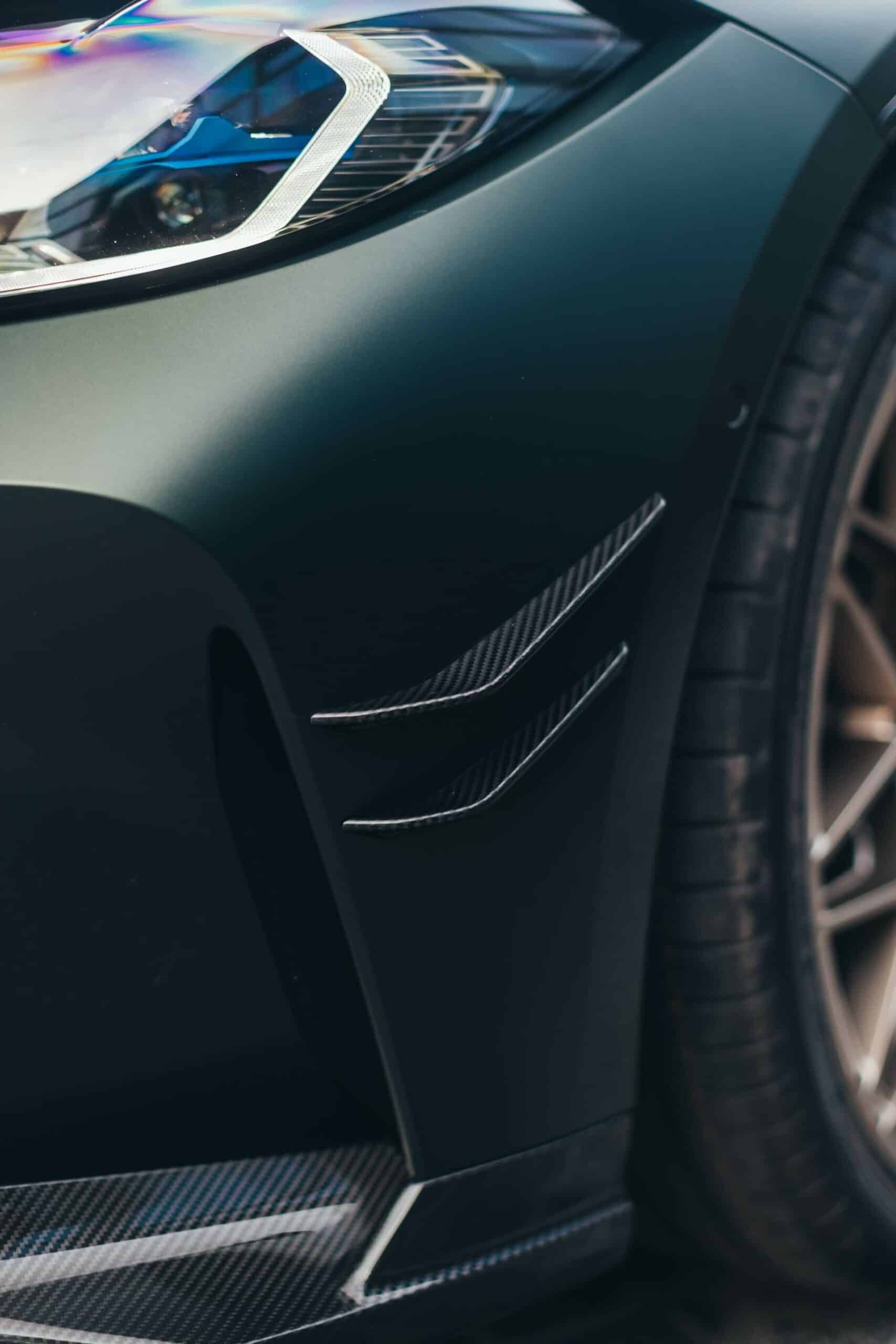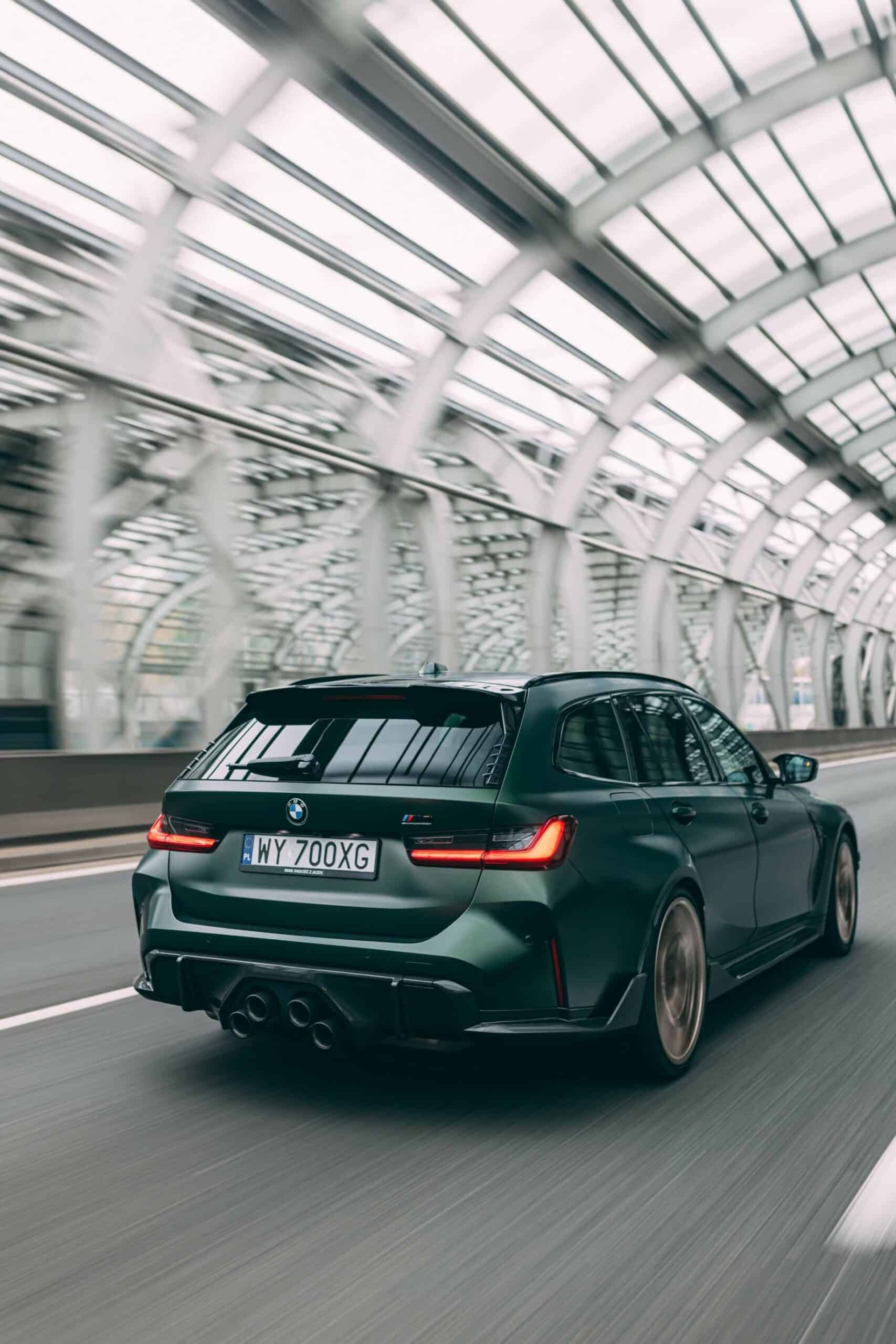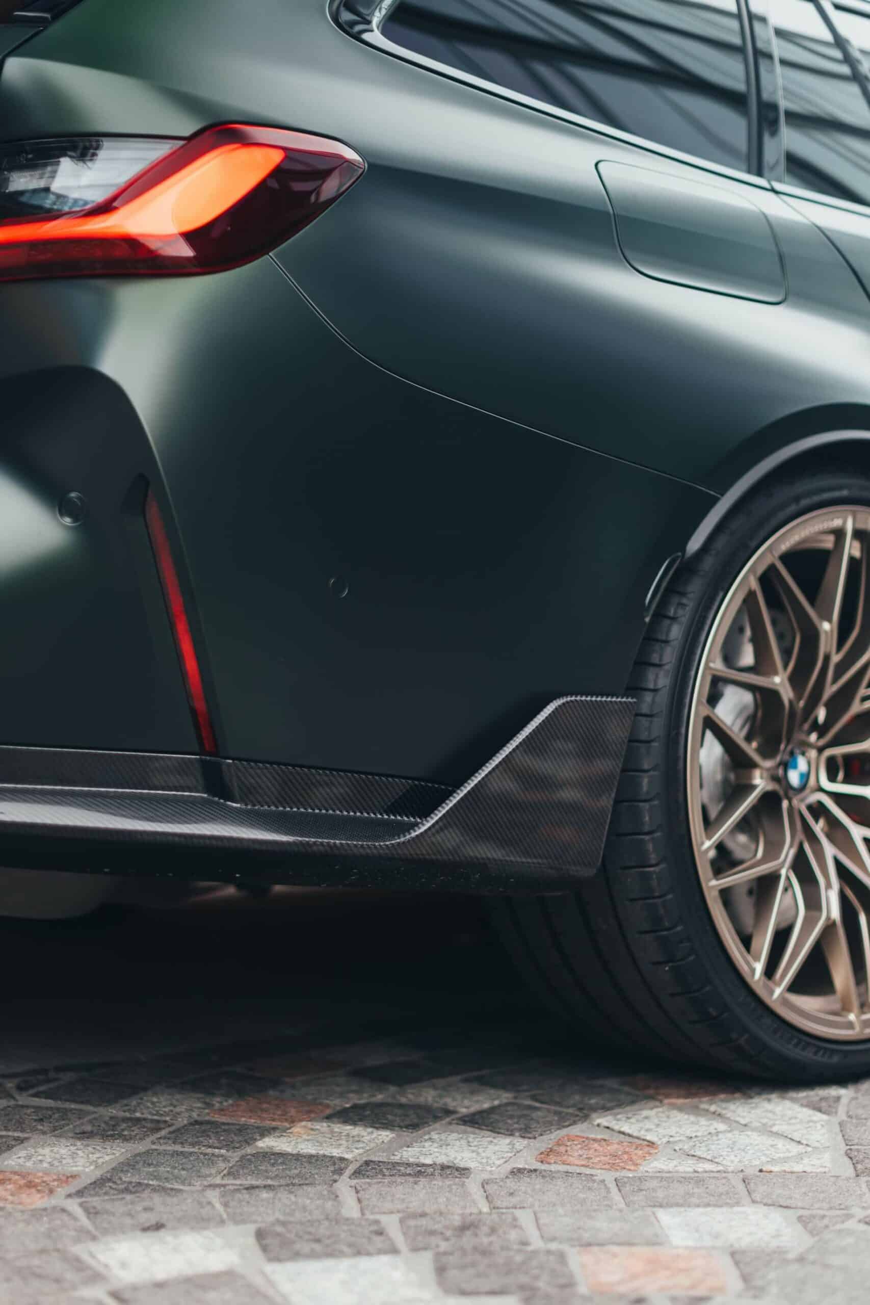 Made famous by the M5 CS, the Frozen Deep Green color suits the M3 Touring quite nicely and is contrasted by the Frozen Gold finish of the optional 1000 M wheels. There are more than a few carbon fiber add-ons, including the front canards that we’d argue, are overkill on a wagon. At the rear, the speedy estate has a different diffuser housing the center-mounted exhaust tips you can also get for the M2 and M4.
