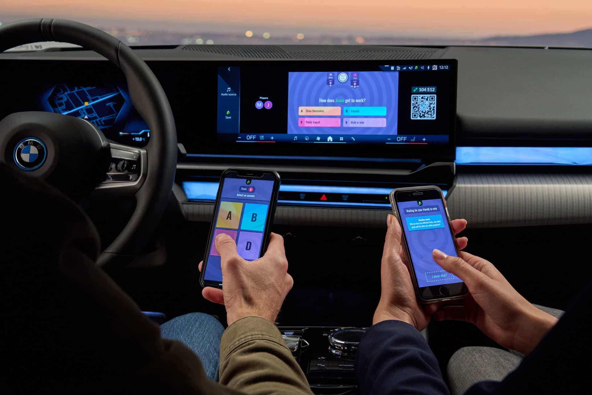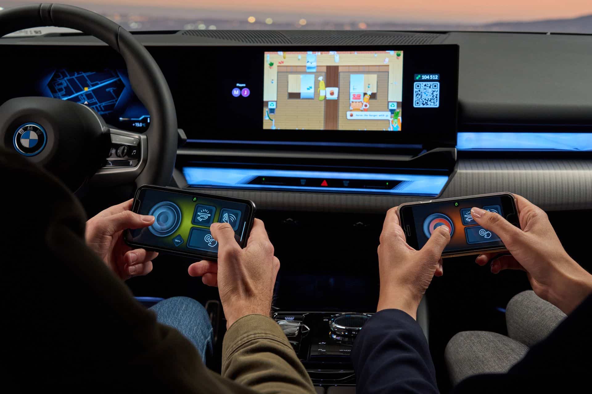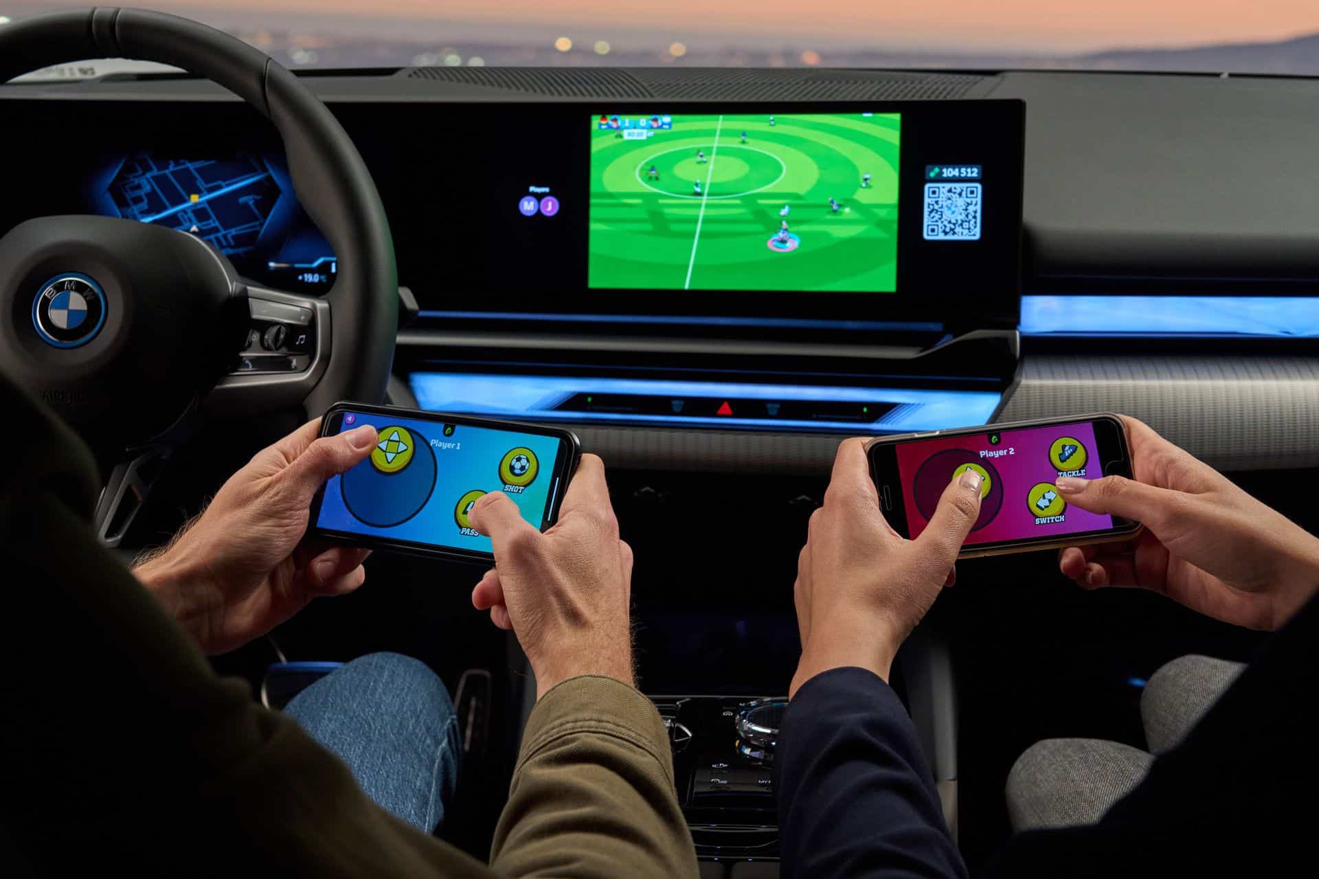 BMW partnered with AirConsole to provide a full-on gaming experience from the front seats of the new BMW i5. In a nutshell, the iDrive 8.5 screen turns into your gaming monitor and your mobile phone(s) becomes the controller. You can play with as many people as the car will fit and there are a 15 games to choose from, including Golazo (a soccer game), Go Kart Go (a racing game), and Music Guess, just to name a few.
