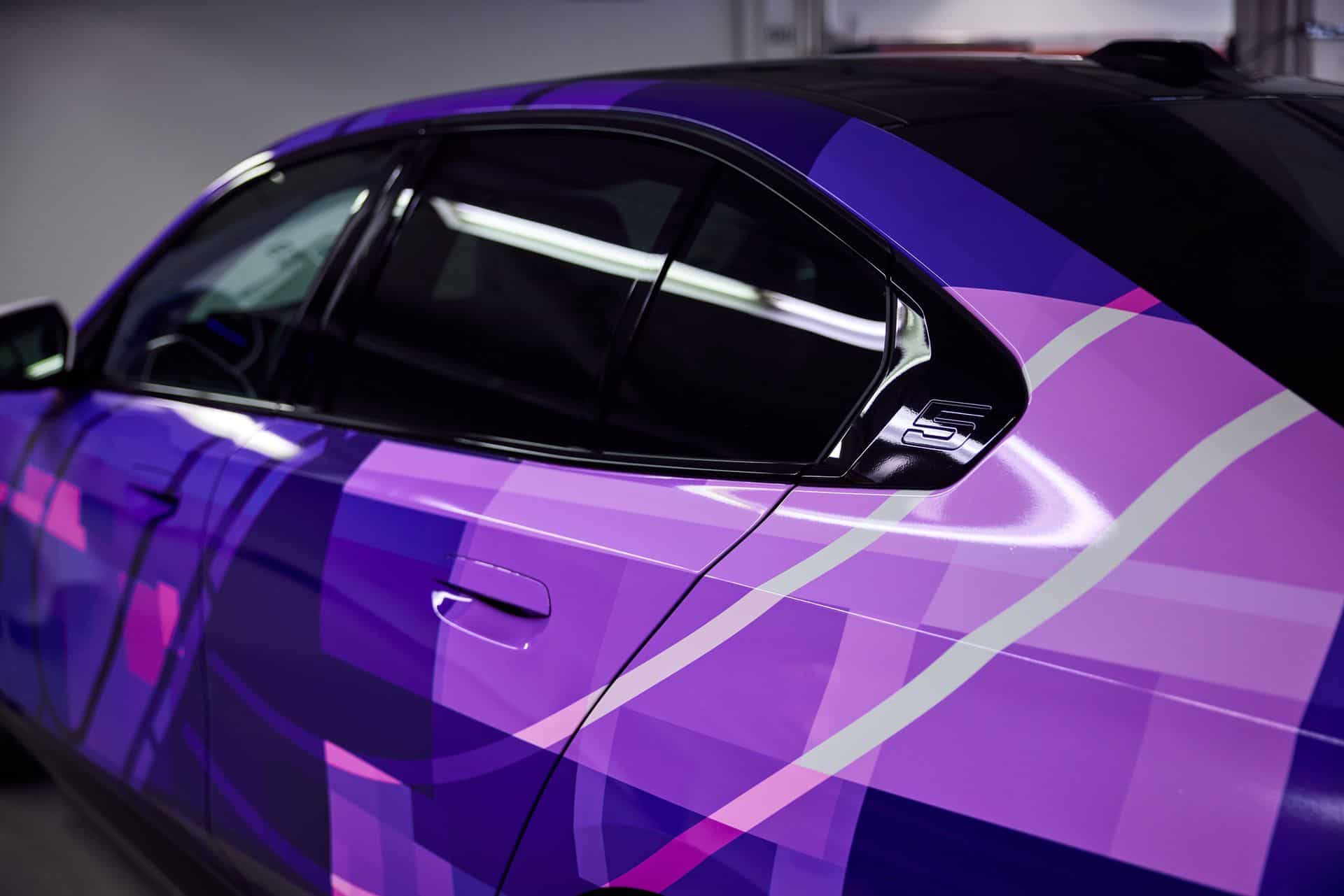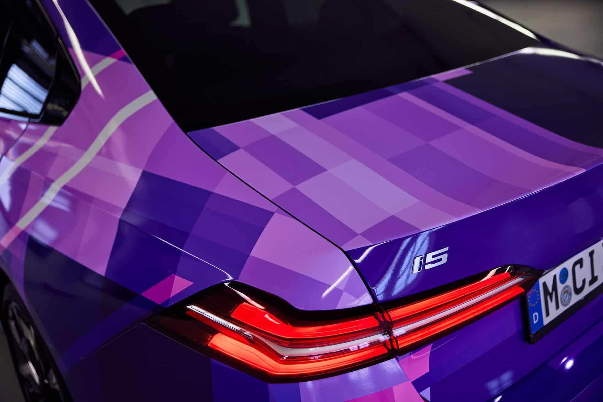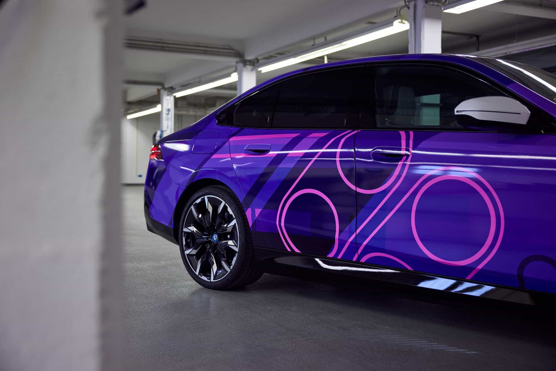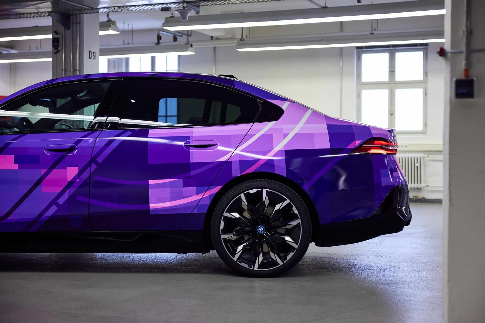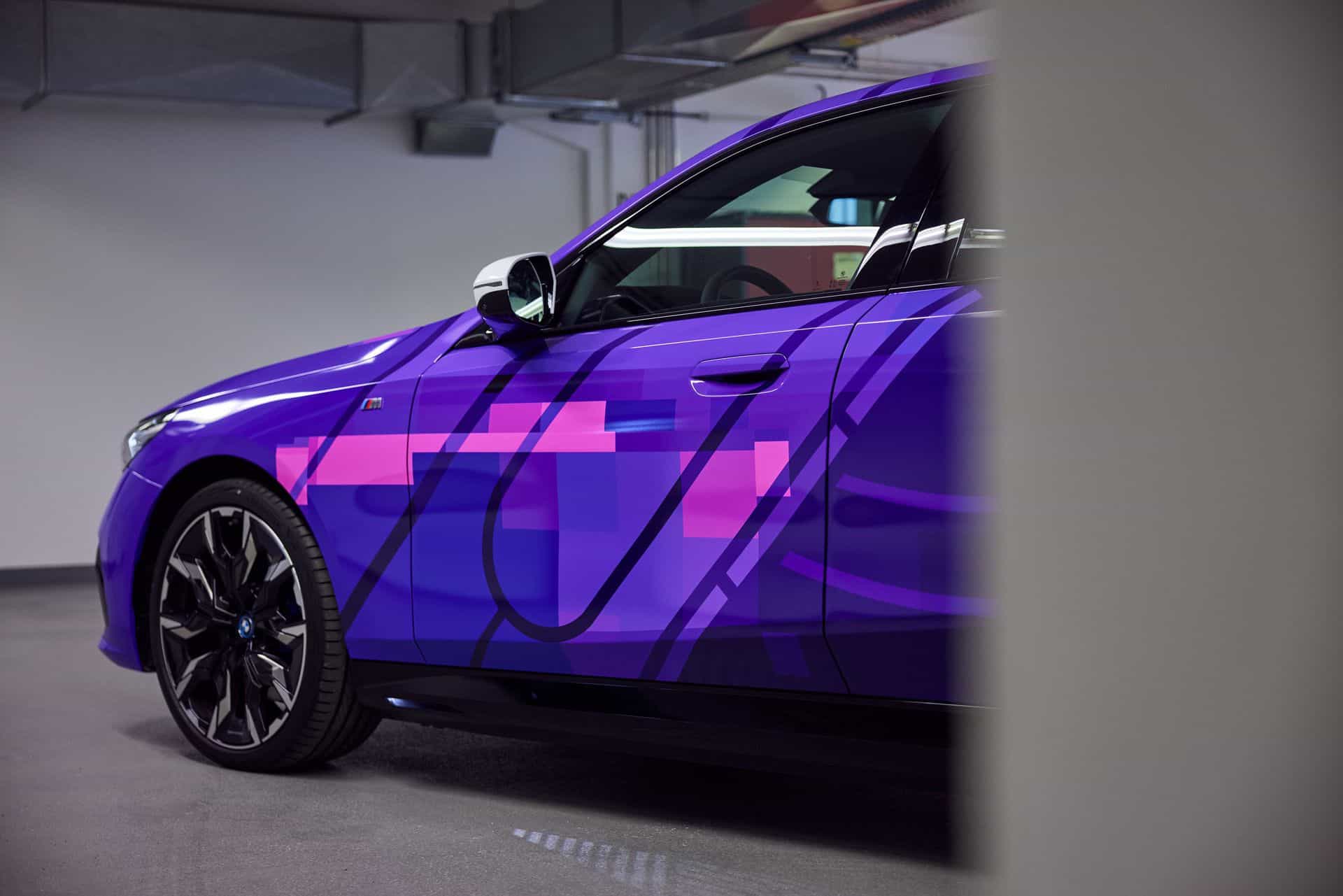 We had the chance to actually test the new gaming mode out in a BMW i5. In honor of the introduction of in-car gaming, BMW unveiled a special edition BMW i5 adorned with a distinctive gaming wrap. The design represents an immersive journey into the world of gaming, capturing the essence of individual pixels. Paying tribute to the beloved 8-bit era of computer games, the design prominently features large pixels. The chosen color palette draws inspiration from the diverse array of games offered on the AirConsole platform. The wrap also cleverly incorporates elements of video game controllers, wrapping them around the i5’s exterior.