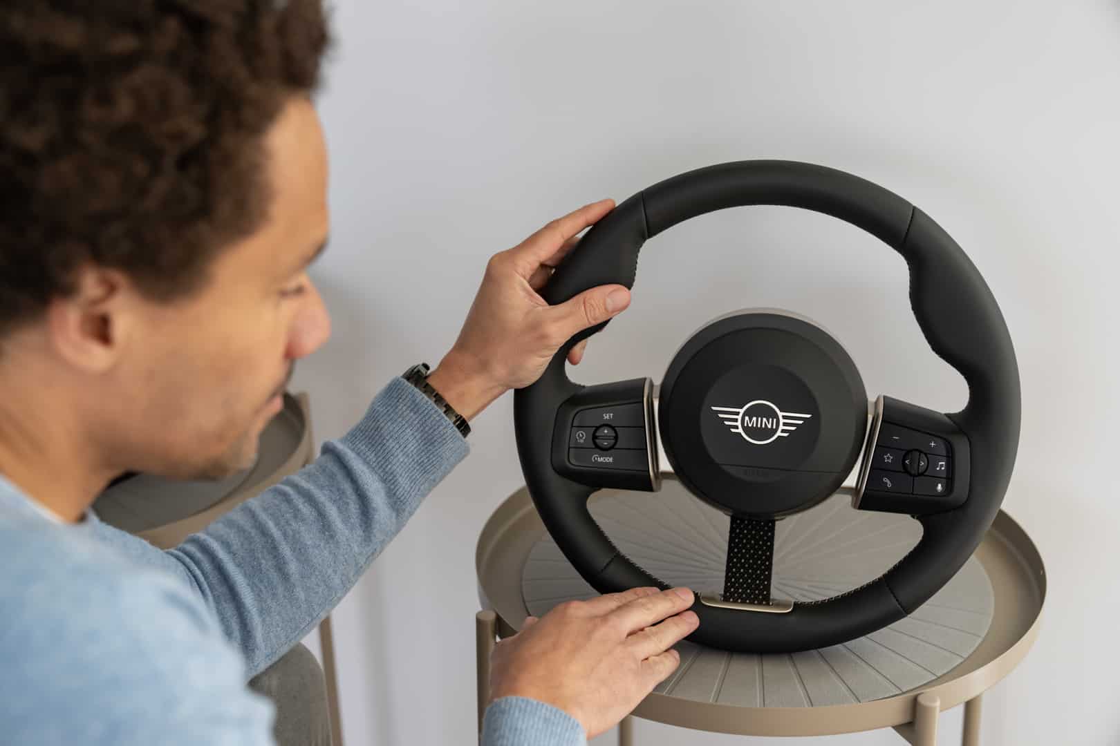MINI is also expanding that simplicity into the cabin, too. Its steering wheel features an odd two-spoke design that gets an additional third spoke but the latter is different than the other two, as it’s a skinny fabric strap. MINI is also reverting back to a central driver’s display, also like the original, and is ditching the digital gauges in front of the driver. That frees up the dashboard in front of the driver and makes it easier on the eyes.