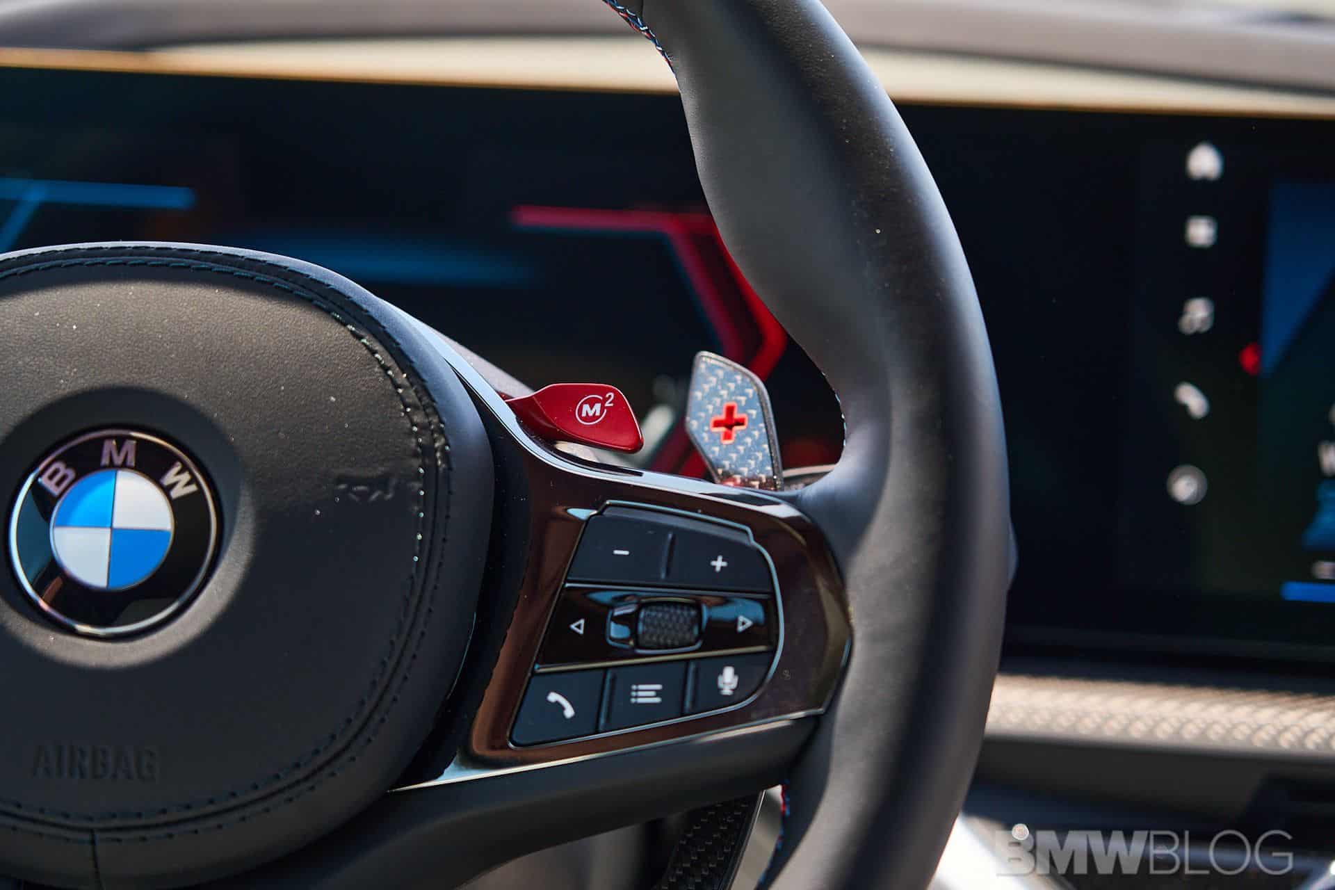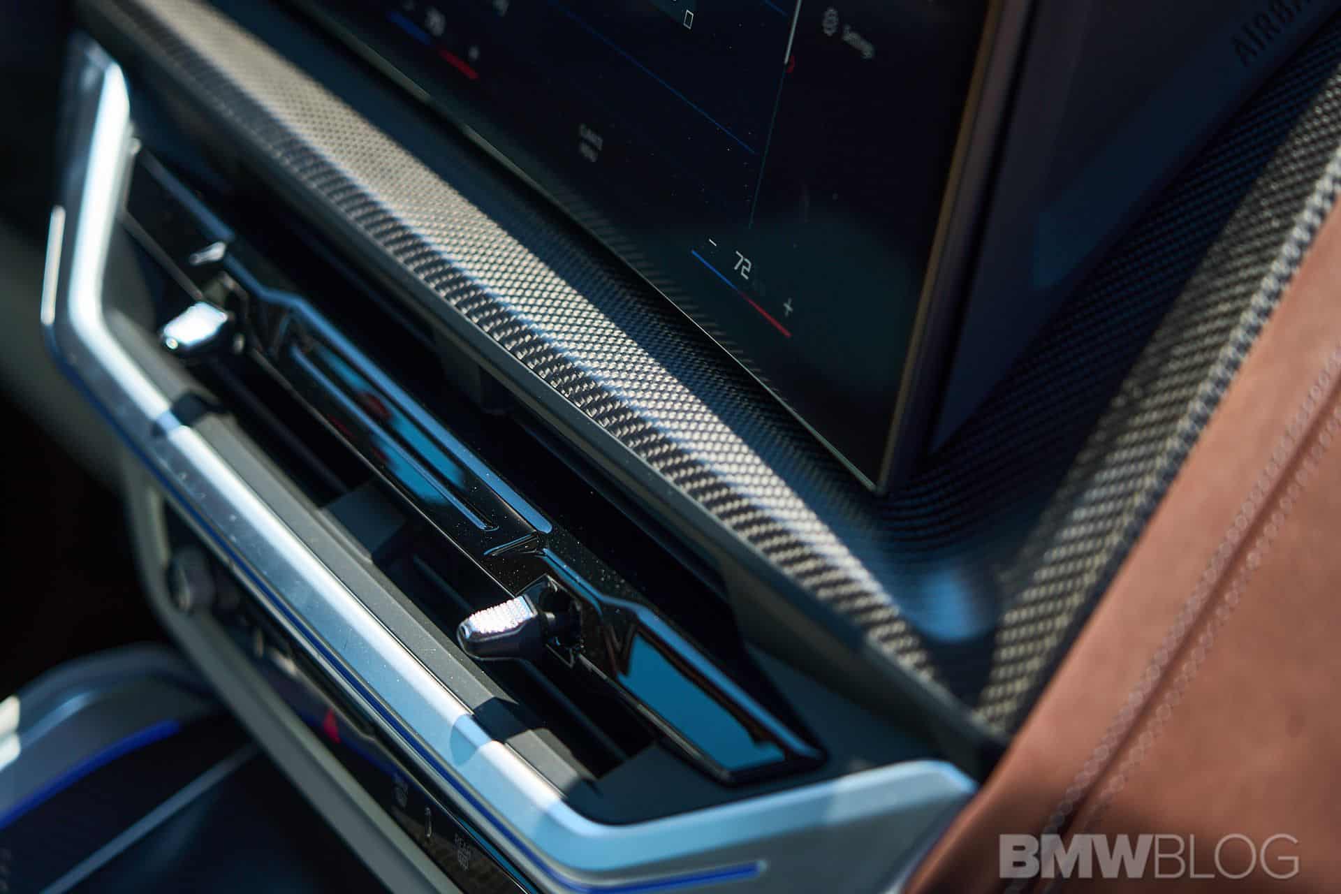 Shifting focus to the remaining interior elements, it becomes immediately apparent that many of the design elements at the front have been carried over from the X5 M. Regrettably, the carbon fiber with interwoven copper trim, as showcased in the Concept XM, did not make it to the final product. Similarly, the chrome bar that used to separate the driver from the passenger is absent. And I mustn’t forget to mention the remarkable air vents, which, in my opinion, rank among the finest I have ever seen in any BMW model. In the category of unique design features I must also include the flat-bottom steering wheel and the gear shifter.